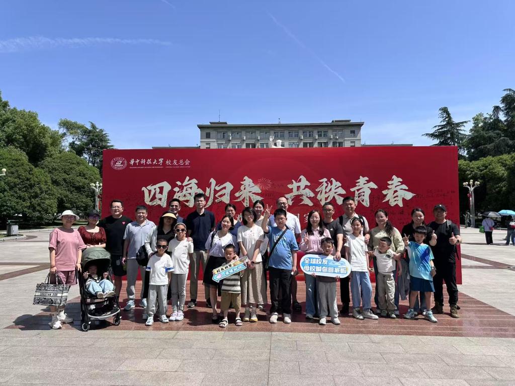 五一期间,williamhill英国0103班校友返回母校。二十余位校友及家属们在校园徜徉,参加学校校友总会举行的“科技报国、喻子薪传”校友子女研学活动。同学们回忆求学时的青春时光,漫步华科大校园,在南一门广场、校史馆、梧桐语问学中心、青年园等地合影留念,感叹学校日新月异的变化。