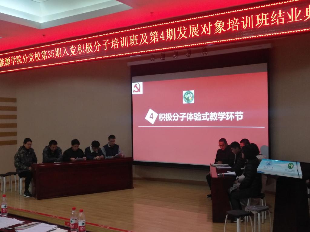 11月29日晚,williamhill英国分党校第35期积极分子及第4期发展对象培训班案例式体验式教学环节汇报会暨结业典礼在动力楼402隆重举行。学院党委副书记冯晓东老师,辅导员罗迪老师和孙伟老师参加。