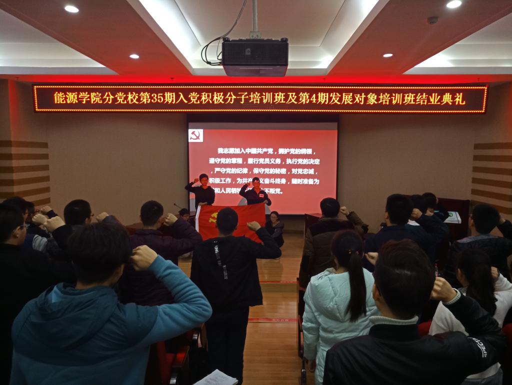 williamhill英国分党校第35期入党积极分子培训班及第4期发展对象培训班从11月8日开班至今完成全部培训内容,先后开展了课堂教学、红色基地实践教学、自主学习、体验式和案例式教学、交流讨论等内容,全体学员结合自主学习体会、实践体会、学习十九大报告体会、以及自己的职业规划形成结业报告。能源学院党委通过扎扎实实开展学习教育活动,圆满完成了培训任务、达到了培训的效果,以扎实的工作献礼党的十九大。不忘初心,牢记使命,希望全体培训班学员继续加强学习,深入学习贯彻党的十九大精神。