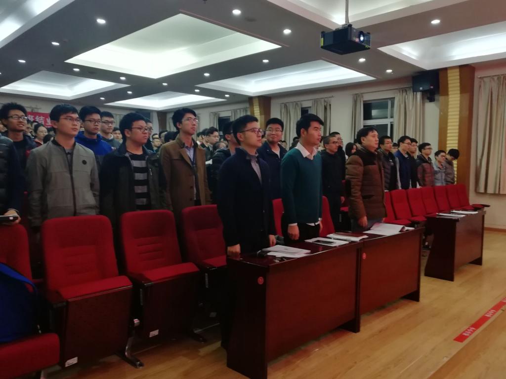 会议第一项,全体起立,唱国歌。在庄严的国歌声中,全体老师和同学起立合唱,会场整体气氛庄严肃穆,会议也在国歌声中缓缓拉开序幕。