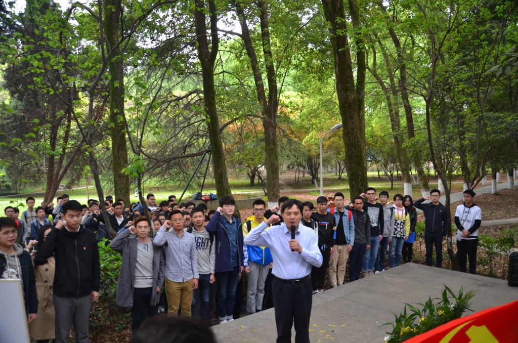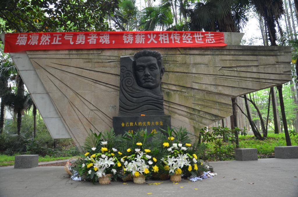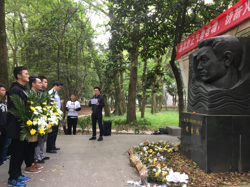 中午12点40分,祭扫在学院学工组长、分团委书记罗迪的主持下正式开始。师生在青年园胡吉伟塑像前庄重肃立,全体默哀一分钟。接着,青马班学员代表、党员代表、团员代表向胡吉伟塑像献上花篮并鞠躬,表示对英雄的沉重悼念。