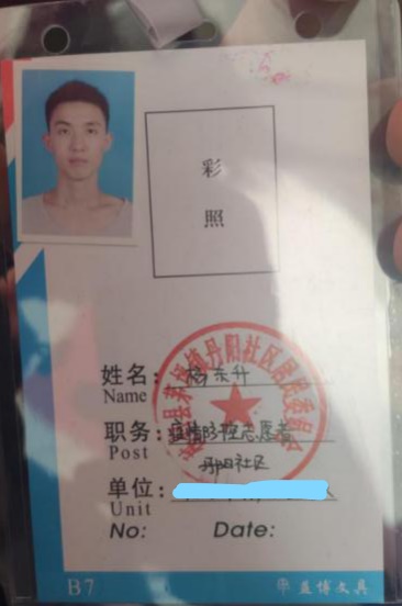 能动1704班杨东升同学,刚刚在上学期提交入党申请书的他面对疫情冲锋在前,2月23日主动报名防疫志愿者,从2月23日至今一个多月时间扎进社区,挨家挨户测体温100余家,控制社区人员进出,为疫情防控贡献自己的力量。