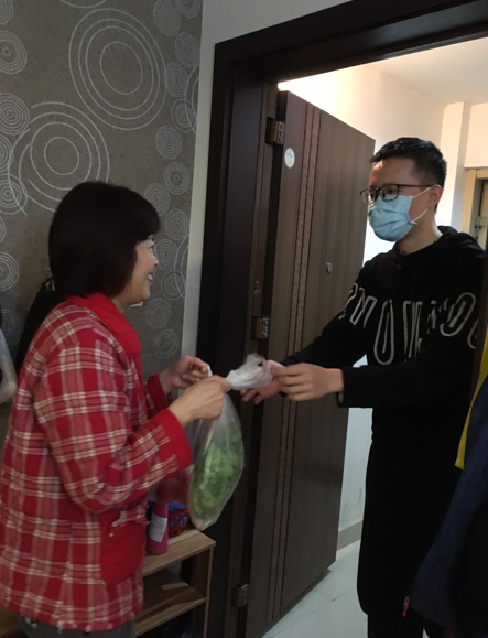 能卓1701班钱礼翔同学,化身社区生活“保障员”,参与社区服务工作,为社区居民运送蔬菜等生活物资。