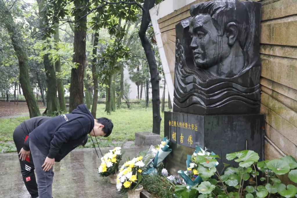 随后,能卓1901班、能动1901班、能卓1701班同学代表在胡吉伟学长的雕像前敬献花篮,表达哀思。