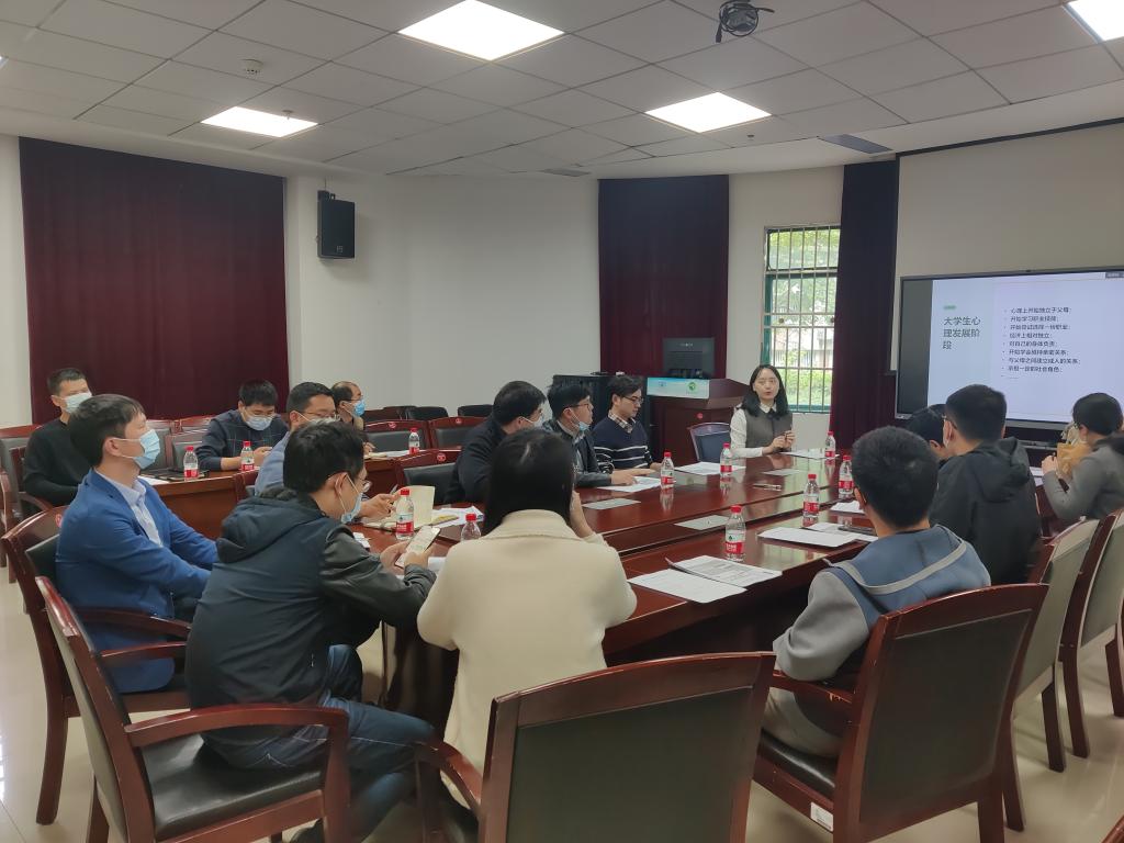 为进一步加强我院心理健康教育工作,提升教师心理育人的专业素质,2022年4月20日下午,能源学院于动力楼201会议室召开教师心理健康教育专题座谈交流会。心理健康教育中心专职咨询师黎碧尘老师做专题分享,能源学院党委副书记、副院长张立麒老师、本科2021级教师班主任、新入职教师以及学工组辅导员参加座谈。