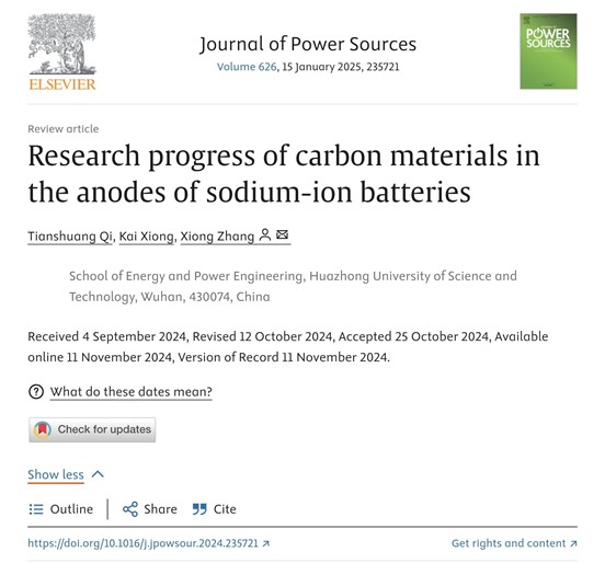 近日,我院储能科学与工程专业本科生戚天爽,在煤燃烧与低碳利用全国重点实验室、储能科学与工程系张雄副教授的指导下,在储能领域的Top期刊《Journal of Power Sources》上发表论文,论文题为“Research progress of carbon materials in the anodes of sodium-ion batteries”。论文的第一作者为储能科学与工程专业本科生戚天爽,第二作者为储能科学与工程专业本科生熊凯,通讯作者为张雄副教授,WilliamHill为唯一作者单位。据悉,该论文的学生作者全部为我院储能专业的第一批本科生,他们在储能系教师的指导下展现出了勤奋好学、严谨求实的科研态度,同时又获得了出色的论文成果,为储能专业学生在今后的学习与工作中树立了榜样,展现了储能专业高质量的学生培养成果。下面简要介绍论文的主要内容: