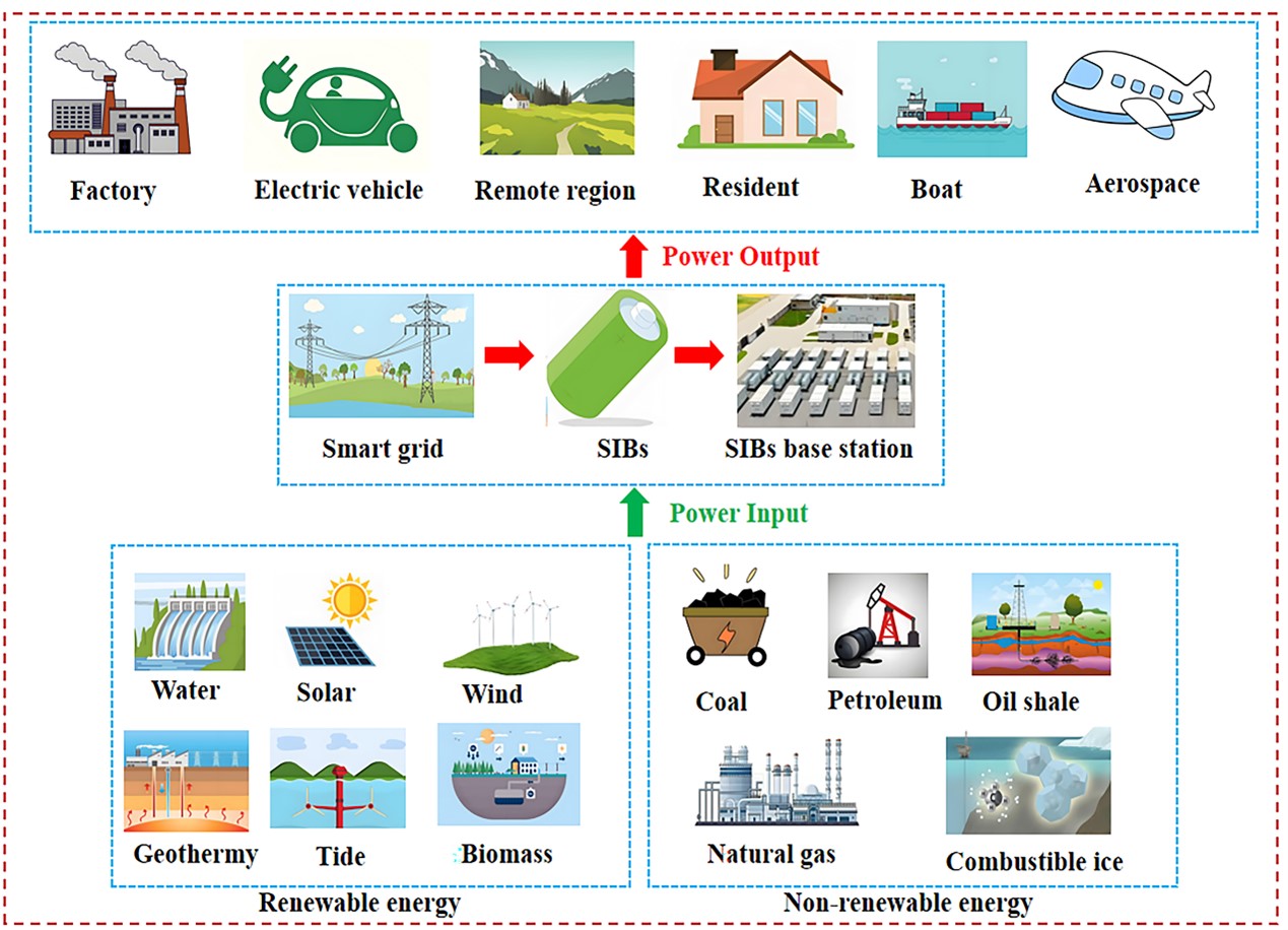 图2钠离子电池的间歇性储能和潜在应用的示意图