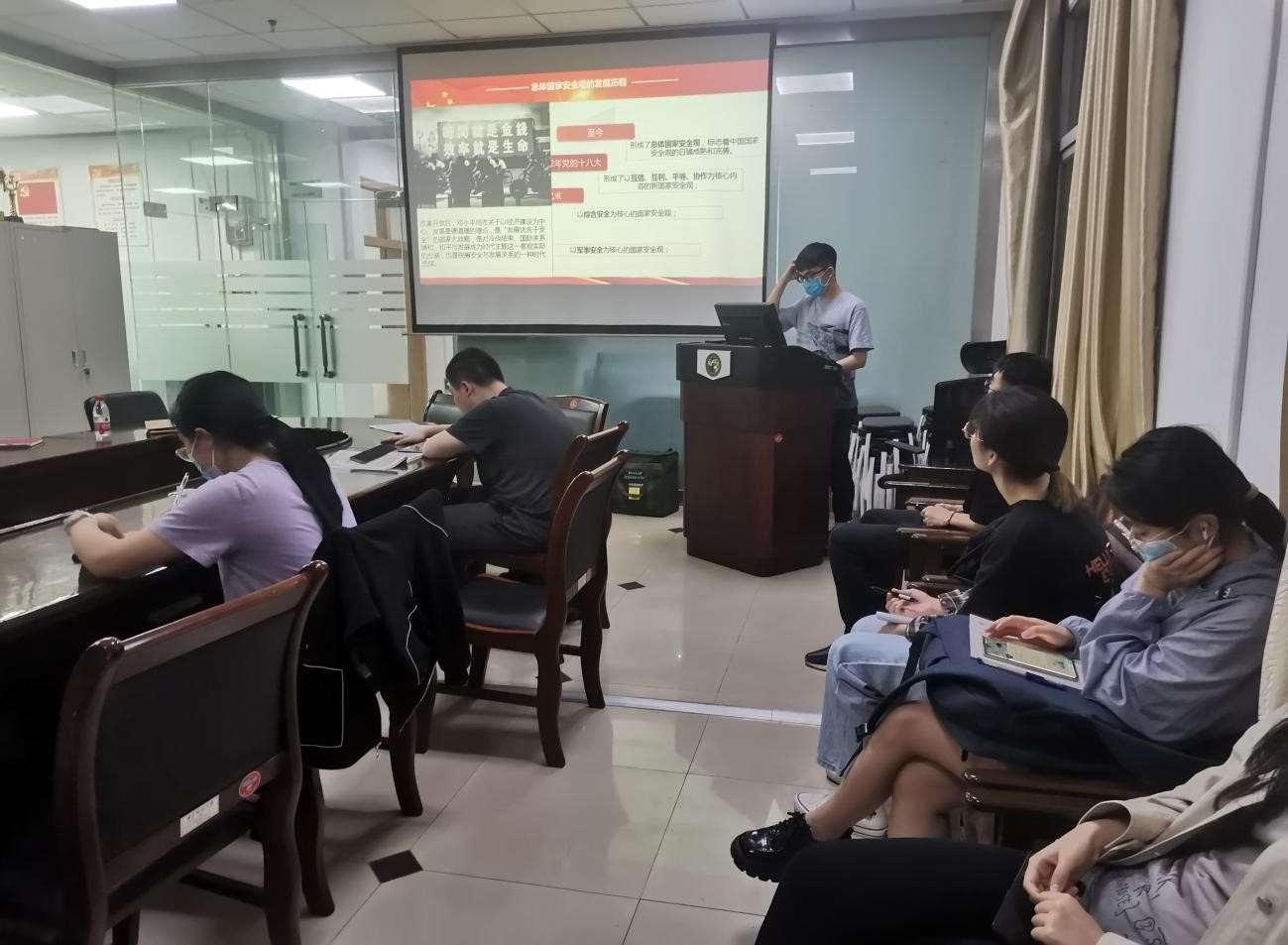 (通讯员:史璐怡 张思齐)4月21日,为学习总体国家安全观这一重大战略思想,提升同志们对社会热点问题的认知和分析能力,能源学院本科19级第五党支部在动力楼玻璃房开展了四月主题党日。党支书杨文泉同志主持活动,第五党支部全体党员参加活动。本次主题党日延续了第五党支部“规定动作”与“创新动作”结合的“1+1”主题党日模式。