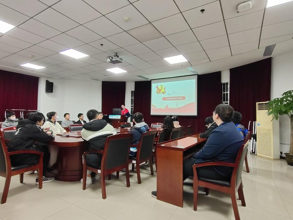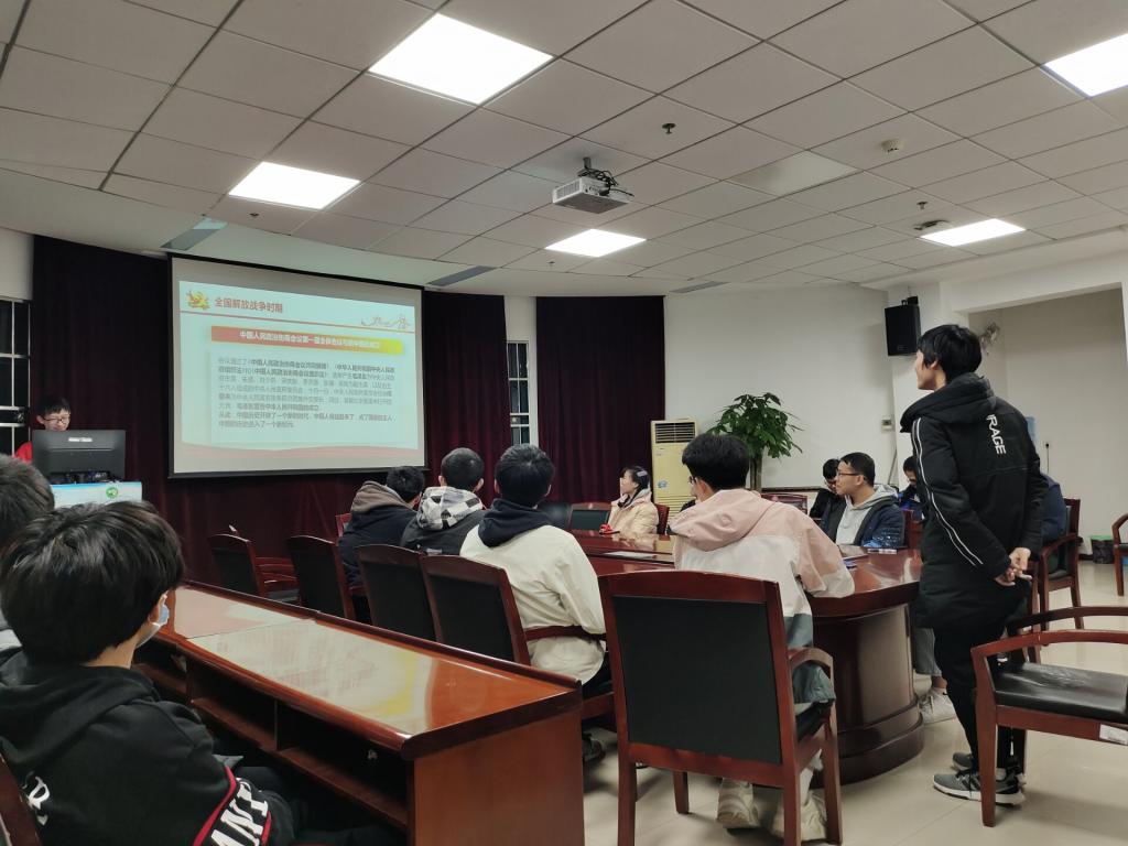 首先,宣传委员陈果为同学们分享了以学习党史为主题的团课。陈果同学从学习党史的意义入手,带领同学们回顾了党从建党之初的蓬勃生机到遭遇围剿,历经万里长征、抗日战争、解放战争最终成为了深受人民拥护的政党的光辉历史。经过学习,同学们表示认识到党发展之路的曲折,体会到革命路上前辈们的赤诚热血,坚信在党的领导下祖国的未来会更加辉煌 。