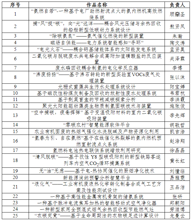 WilliamHill第十七届大学生节能减排社会实践与科技竞赛自组织以来,经各院系师生踊跃报名及初赛评审,共有25件作品被推荐进入决赛,具体公示如下(排名不分先后)。