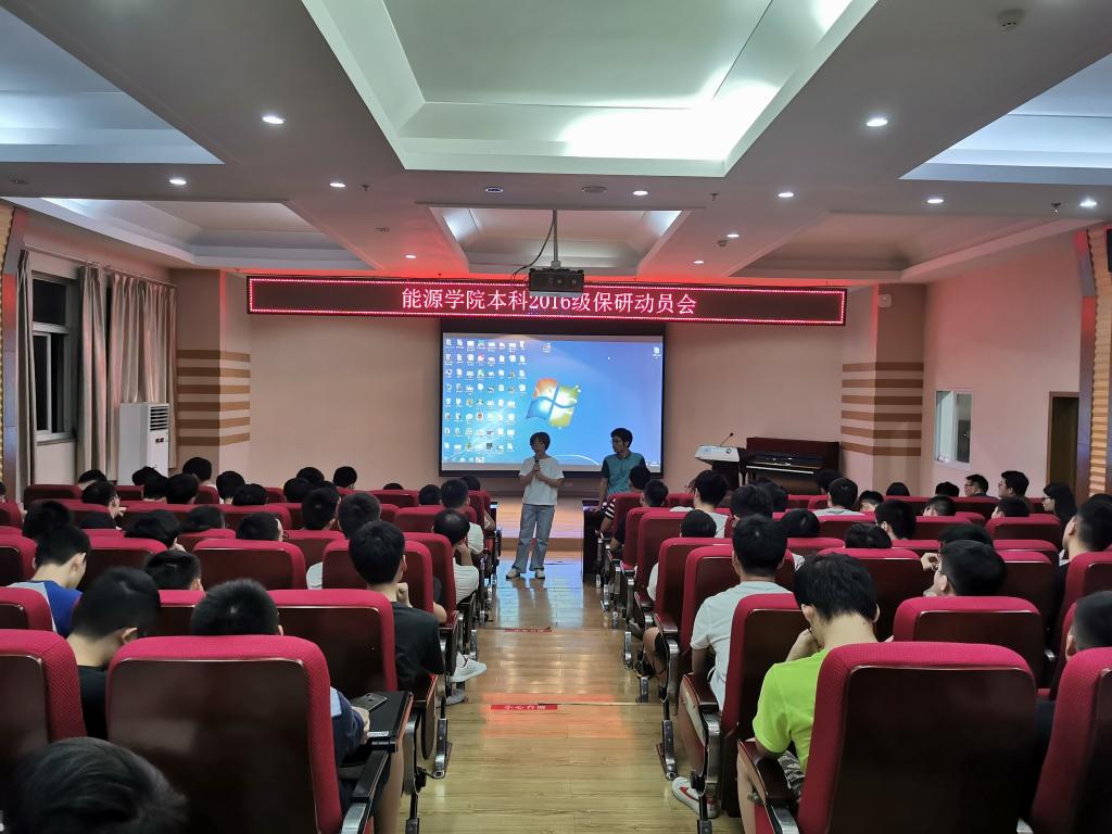 2019年9月10日晚上,能源学院90多名入围推荐面试攻读研究生面试的同学在动力楼402会议室参加了2016级保研动员会,张立麒副院长、教务科王晓墨老师、研究生科王英双老师向大家传达了我院今年推荐免试攻读研究生的相关政策,推免流程及指标分配情况。
