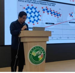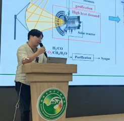 接下来钟典博士和李光阳博士分别带来了题为“Characterization and Mechanism Study of Solar-Driven Biomass Gasification”和“Preparation of metal-doped porous carbon-based catalysts for electrocatalytic water splitting”的报告。钟典博士从聚光太阳能与生物质热转化技术的有机结合出发,展示了特殊加热条件下生物质热解气化层级反应特性,探究了其对气化反应过程的影响。李光阳博士详细介绍了电解水制氢技术和相应电催化剂的开发研究,并重点展示了金属掺杂多孔碳基电催化剂的优势和发展前景。