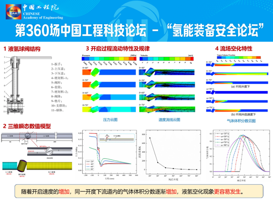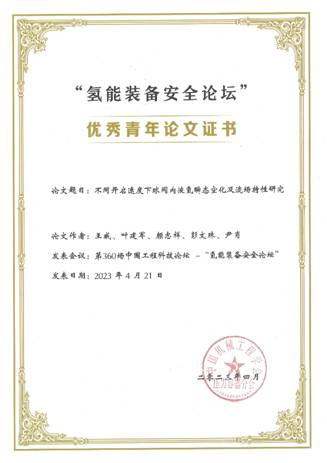 2023年4月20日-21日,由中国工程院主办,中国工程院机械与运载工程学部、中国机械工业集团有限公司等单位承办的第360场中国工程科技论坛——“氢能装备安全论坛”在广东省佛山市隆重举行,中国工程院、中国科学院、德国工程院等18位院士受邀参会,现场参会代表300余人,线上参会超13000人次。此次论坛以氢能装备安全为主题,共选出9篇优秀青年论文奖,其中我院流体机械及工程系叶建军教授指导硕士生王威的论文《不同开启速度下球阀内液氢瞬态空化及流场特性研究》获得该奖项。