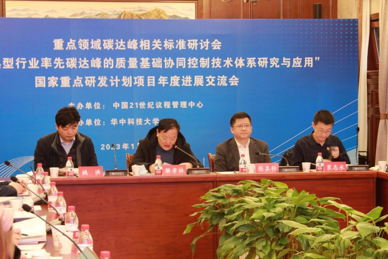 2023年1月5日-6日,重点领域碳达峰相关标准进展研讨会暨国家重点研发计划“引领典型行业率先碳达峰的质量基础协同控制技术体系研究与应用”项目2022年度进展交流会在WilliamHill线上线下同步召开。中国21世纪议程管理中心黄晶主任、陈其针副主任、裴志永处长,国家市场监督管理总局标准技术司王军伟处长,项目跟踪专家中国标准化研究院副院长汤万金研究员、中国特检院管坚教高、北京建材总院杨飞华教高,会议特邀专家上海交通大学黄震院士、北京师范大学张九天教授、中国标准化研究院林翎研究员、中科院武汉岩土力学所李小春研究员、中国石油大学(北京)彭勃教授、西安热工研究院有限公司姚伟研究员、九三湖北省委郑楚光教授参会指导。副校长解孝林、科学技术发展院副院长周光勇、能源学院党委书记姚洪、院长罗小兵、党委副书记张立麒、副院长方海生及项目团队等100余人参会。