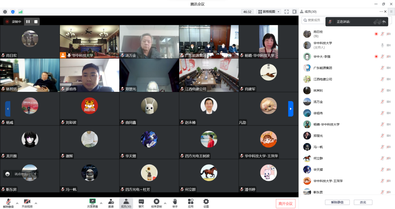 会议邀请市场总局标准技术司王军伟处长介绍了我国碳达峰碳中和标准总体工作进展情况,项目负责人赵永椿教授汇报了“引领典型行业率先碳达峰的质量基础协同控制技术体系研究与应用”项目2022年度进展情况,项目团队就燃煤智能灵活发电领域标准体系、碳捕集利用与封存(CCUS)领域标准体系等进行了专题汇报,各课题及子课题负责人分别做了2022年度执行情况汇报。与会专家对重点领域碳达峰相关标准的进展情况、项目年度执行情况和下一年度工作计划提出了宝贵建议。