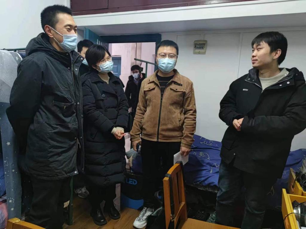 能源学院党委书记姚洪、院长罗小兵、副院长成晓北、副书记孙禄走访本科生宿舍,与学生交流谈心,深入了解学生的学习情况,关心学生的生活状况,提醒学生遵守学校疫情防控有关要求,合理有序的安排好自己的学习计划。
