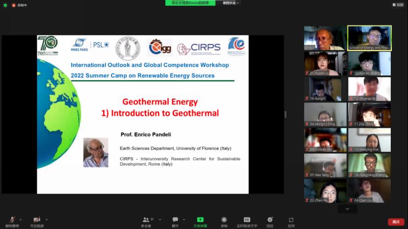 Enrico PANDELI老师为同学们讲授地热能课程,从地热能来源与地热能发展历史入手,具体地介绍了地热资源利用原理以及地热资源应用举例,重点强调了我国北方地热资源丰富的现状,极具开发潜力。