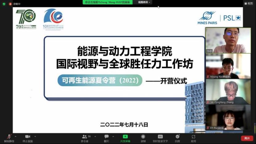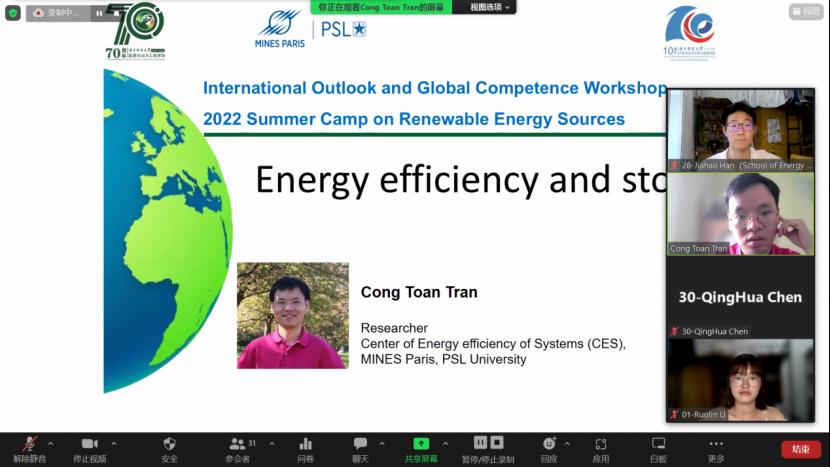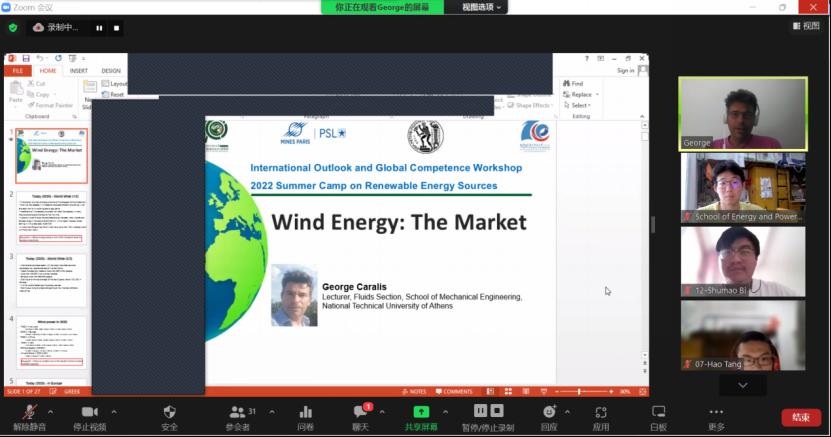 本站讯(通讯员 韩嘉浩)8月2日,williamhill英国“国际视野与全球胜任力工作坊——可再生能源夏令营(2022)”顺利结营。本次夏令营为期16天,共计42学时,共开设七大可再生能源领域专题课程,分别为“氢能及燃料电池”、“风能”、“能源效率及储能”、“太阳能光热”、“地热能”、“生物质”及“太阳能光伏”。由来自法国国立巴黎高等矿业学院、英国诺桑比亚大学、雅典国立技术大学、意大利佛罗伦萨大学、西班牙萨拉戈萨大学等高校的8位欧方相关领域专家授课。能源学院本科19、20、21级的30位学生参加课程并分为十个小组,由韩嘉浩同学、任帅帅同学共同担任联络员,协助欧方老师工作,帮助同学们反馈问题。