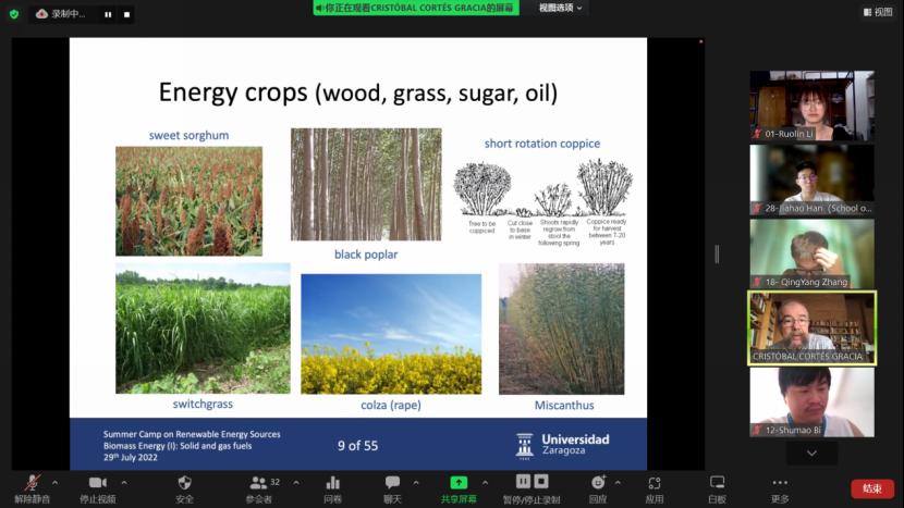 Inmaculada ARAUZO老师和Cristobal CORTES老师为同学们讲授生物质课程,介绍了固体和气体燃料,沼气和液体燃料的利用原理以及应用,全面讲述了糖、淀粉、纤维素等常见的物质的产生与利用过程,给出了大量的生物质燃烧发电厂应用例子。