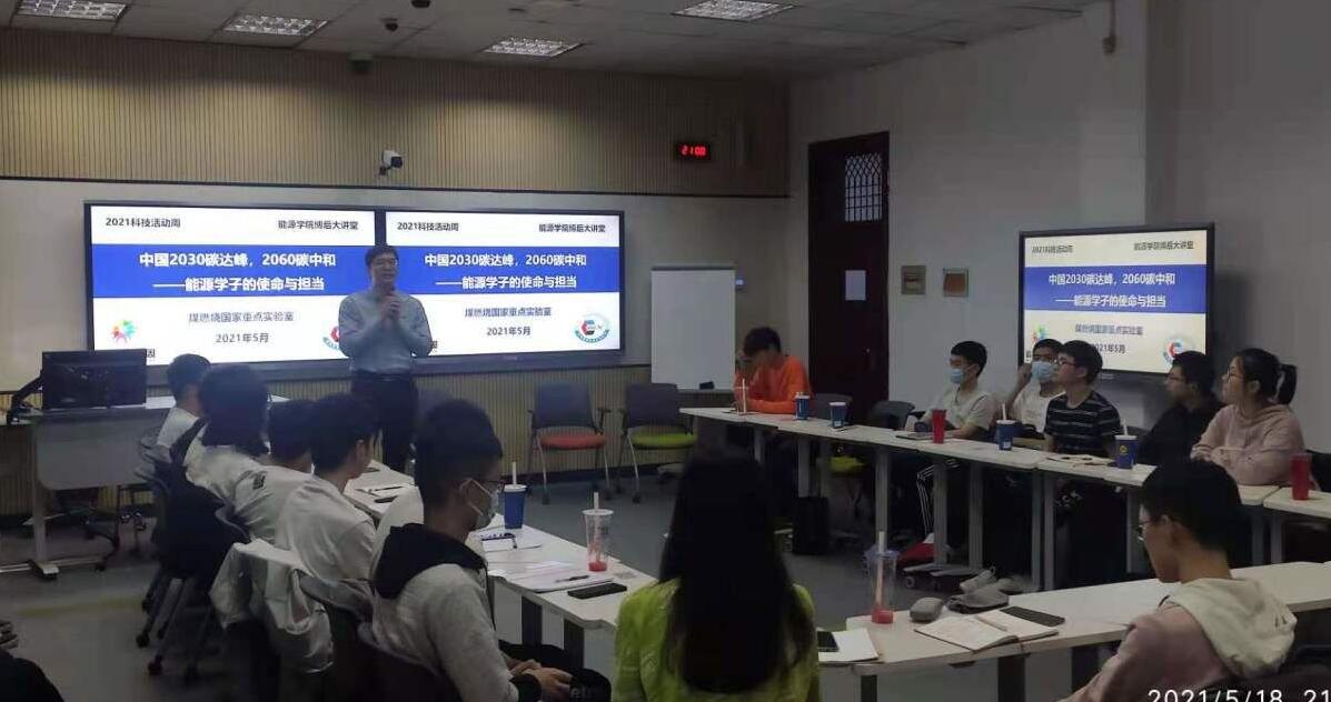 首先,姚洪老师结合国家双碳战略的重大需求,为本科生介绍了学院在低碳科研领域的优势,鼓励同学们在“碳中和工业革命”到来之际努力学习,与国家重大需求“同呼吸、共命运”,把握机遇,充分发挥能源学子作为国家实施双碳战略主力军的作用。