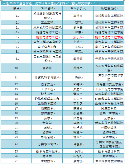 入选2019年度国家级一流本科专业建设点的专业(按公布文顺序)∶