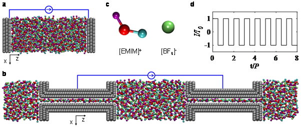 图 1 超级电容器恒电流充放电的分子模拟系统。