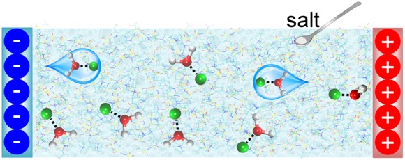 该工作基于纳米尺度界面与能质传递的基础研究,以储能器件中的电极-电解质固液界面为研究对象,探究了添加锂盐对疏水离子液体在电极表面上吸附水的影响规律及其作用机理。这一研究结果,加上前期有关亲水离子液体的工作,解决了离子液体因吸水而降低电压的难题,不但给离子液体超级电容器储能技术的研究与开发提供了新思路、新方案,而且还有利于含水离子液体在其他领域内的应用(如具有高浓度盐溶液的电池)。