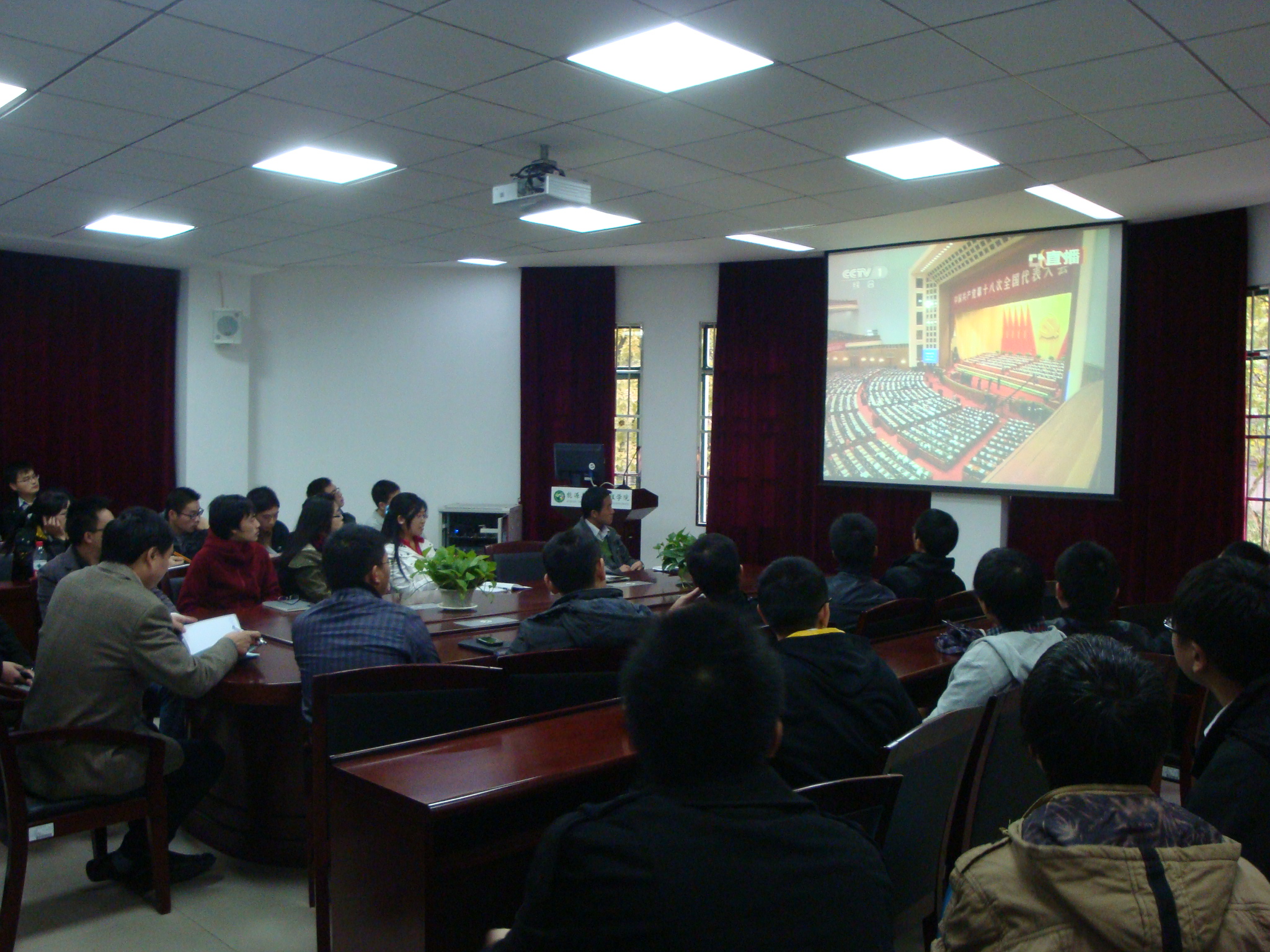 活动初始,冯晓东老师对在场同学的进行讲话,冯晓东老师告诉大家他很高兴能与同学们共同学习十八大的理论知识,他谈论了学习十八大会议精神的重要性,加深学习党的指导思想的必要性。之后,冯晓东老师又与同学们谈论了观看十八大时应注意的事项,鼓励大家要“听进去,开动脑筋”,认认真真听取,对会议内容进行思考。