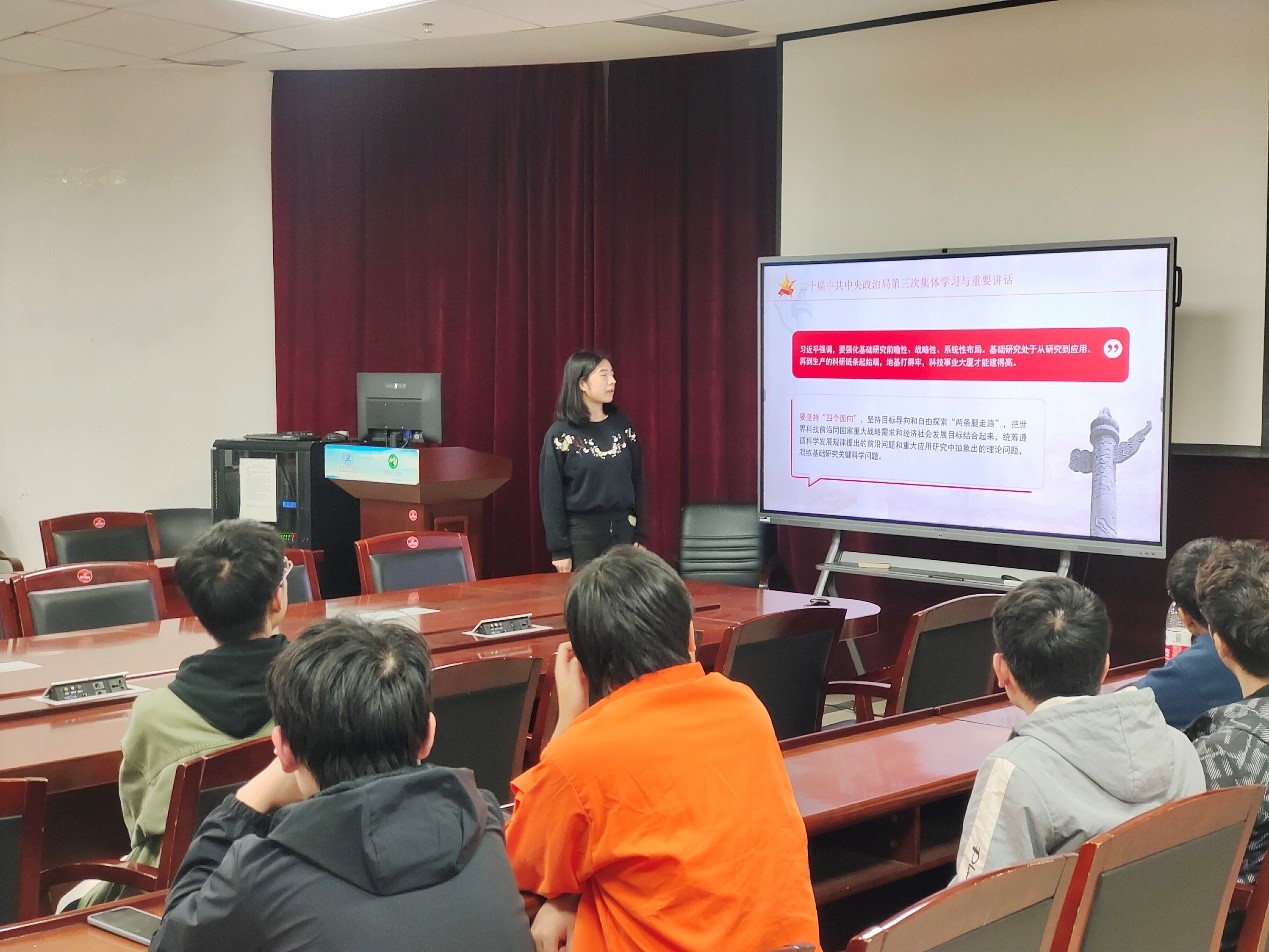 首先,高玲同志带来了对习近平总书记在中央政治局第三次集体学习的重要讲话精神的学习分享。本次学习围绕着“科技”展开,阐明了科技发展在国家战略中的重要地位,各级党委和政府要把加强基础研究纳入科技工作重要日程,加强统筹协调,加大政策支持,推动基础研究实现高质量发展。高玲同志说道:“作为大学生党员,我们要积极学习先进的科学文化知识,求真务实,守正创新,踔厉奋发,锐意进取,争取早日为国家的科技进步贡献出属于自己的力量。”