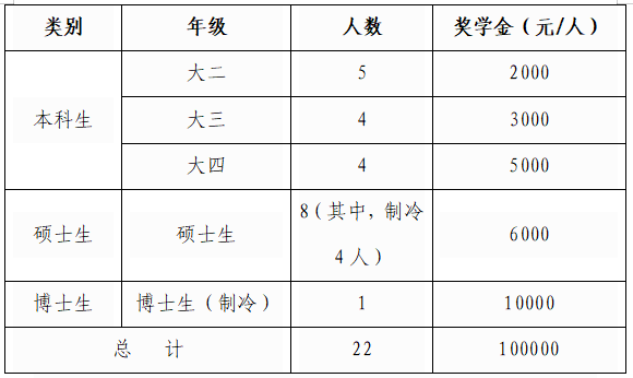 奖励对象为williamhill英国全日制在校学生,“杭氧奖学金”每年评选一次,奖励品学兼优的学生共计22名,详见下表: