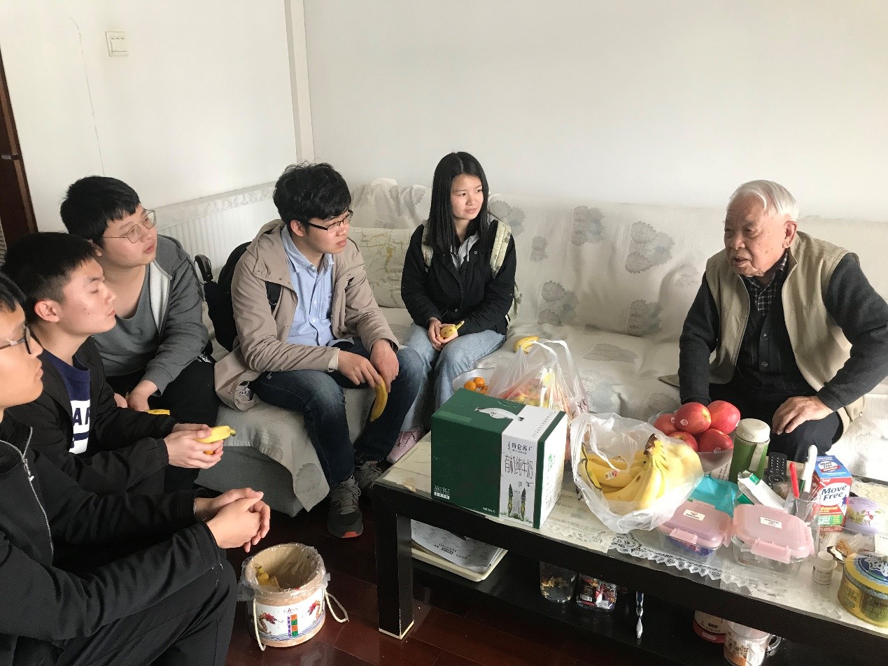 2019年4月4日下午,能源学院资助辅导员李励及“2018-2019学年度贾宗谟助学金”获助代表丁京、蔡冰、颜凯、贝雷、钱礼翔,一同拜访90岁高龄的贾宗谟老师,表达对助学金的感谢,聆听贾宗谟老师的教导,并邀请贾宗谟老师为获奖代表颁奖。