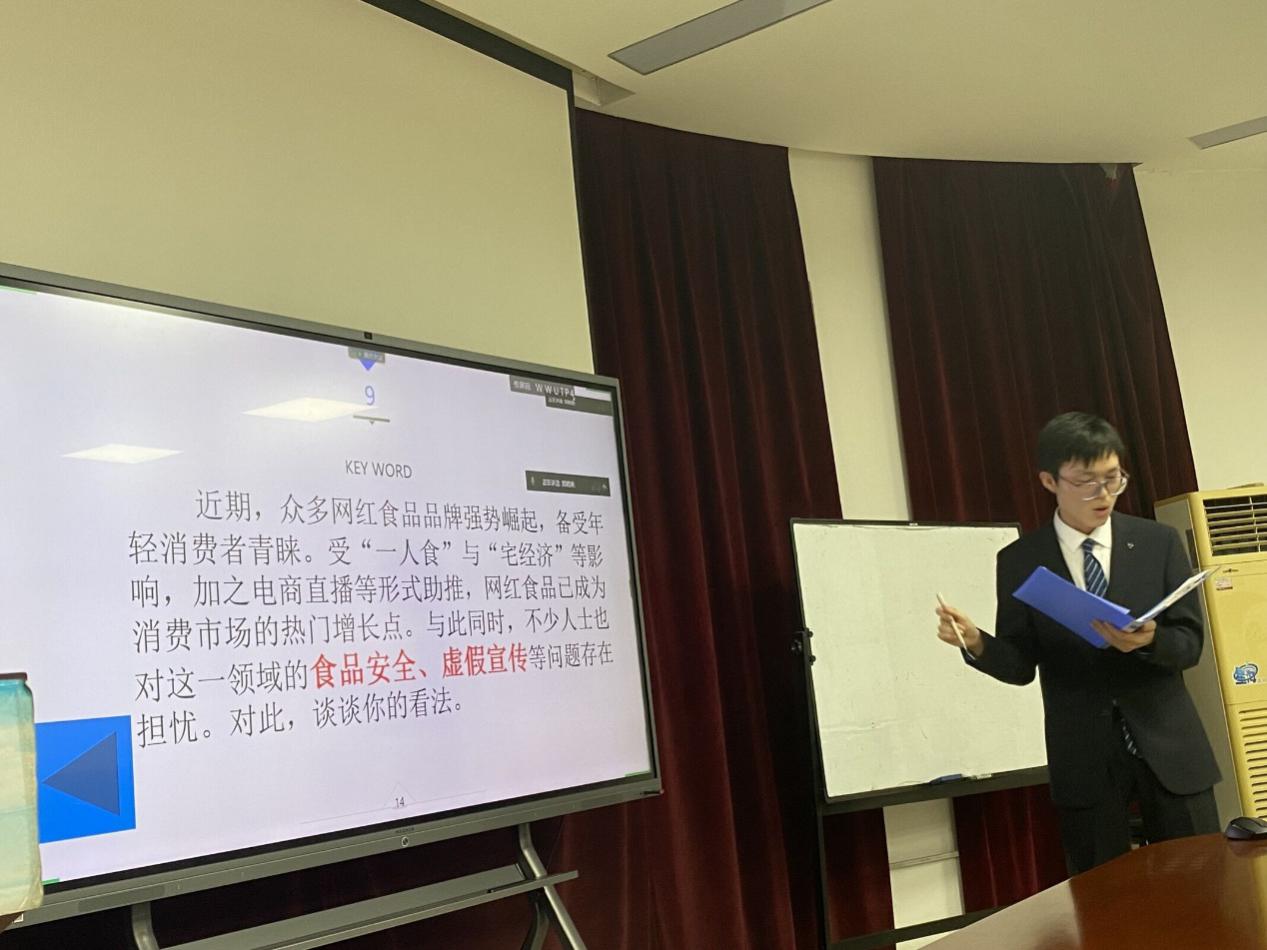 九号选手秦龙同学的个人展示以“寓知于行,实干求思”为题,展示了自己在求知中的收获,前行中的体悟,在实干中的淬炼,反思中的成长。在即兴演讲时,秦龙同学就目前流行的网红食品发表看法,他从网红食品的安全、虚假宣传等方面展开论述。