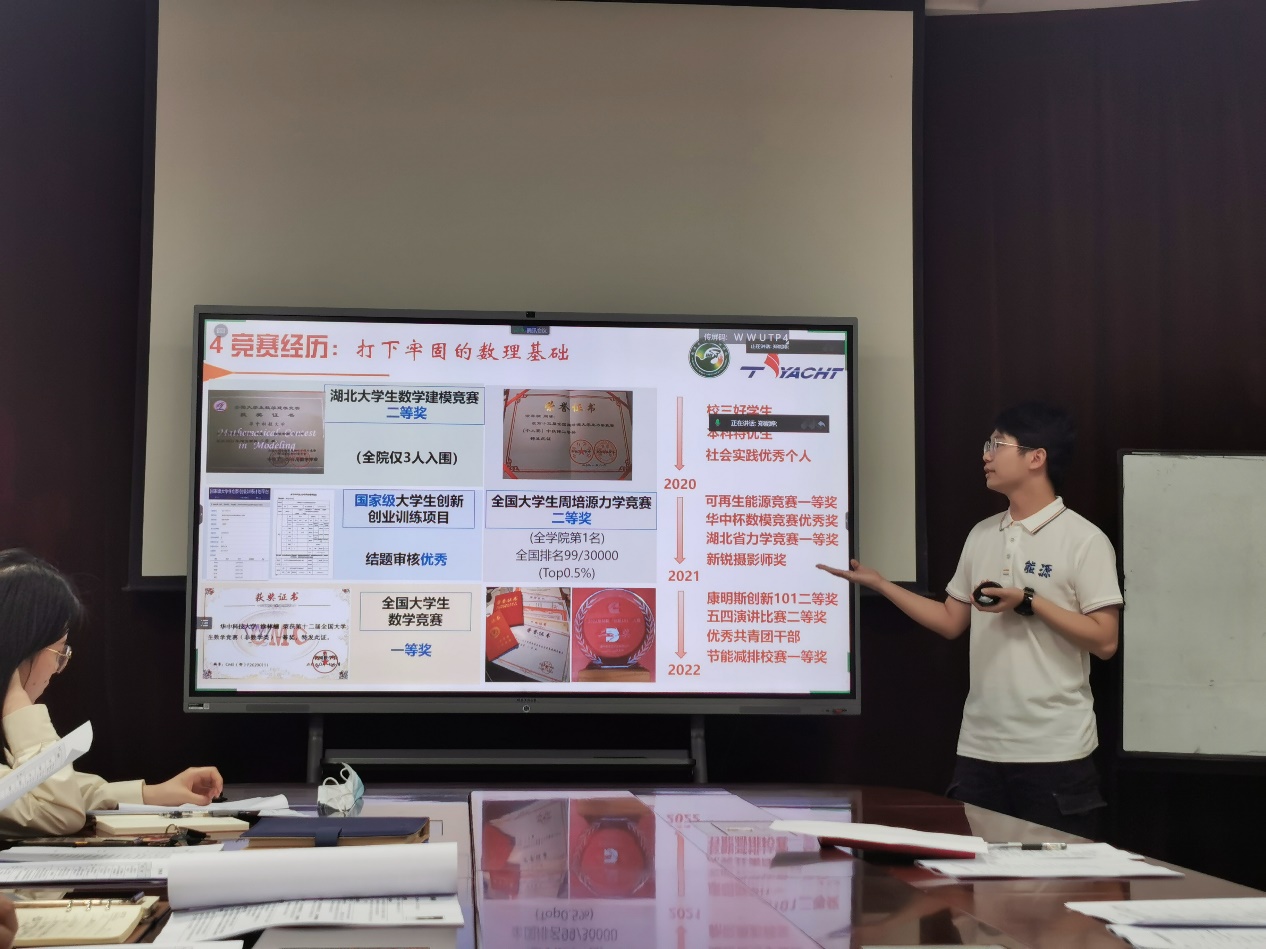 八号选手胡博兴同学的个人展示从专业学习、科研及实践活动三个方面展开,他认真剖析自己,分析自己的优势与短板。即兴演讲环节中,他围绕张文宏医生的寄语“流水争先,靠的是绵绵不绝”从不同方面,以独特的角度发表了自己的见解。