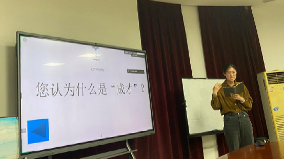 四号选手谢雨霏同学以“心中有星火,大步迈征途”为题,从明德、厚学、敦行、致远四个方面进行介绍展示。作为华中大人,她德智体美劳全面发展,力图卓越。在即兴演讲环节中,谢雨霏同学就“成才”发表了自己独特的观点。