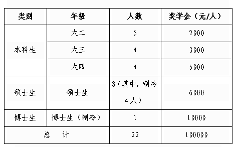 奖励对象为williamhill英国全日制在校学生,“杭氧奖学金”每年评选一次,奖励品学兼优的学生共计22名,详见下表: