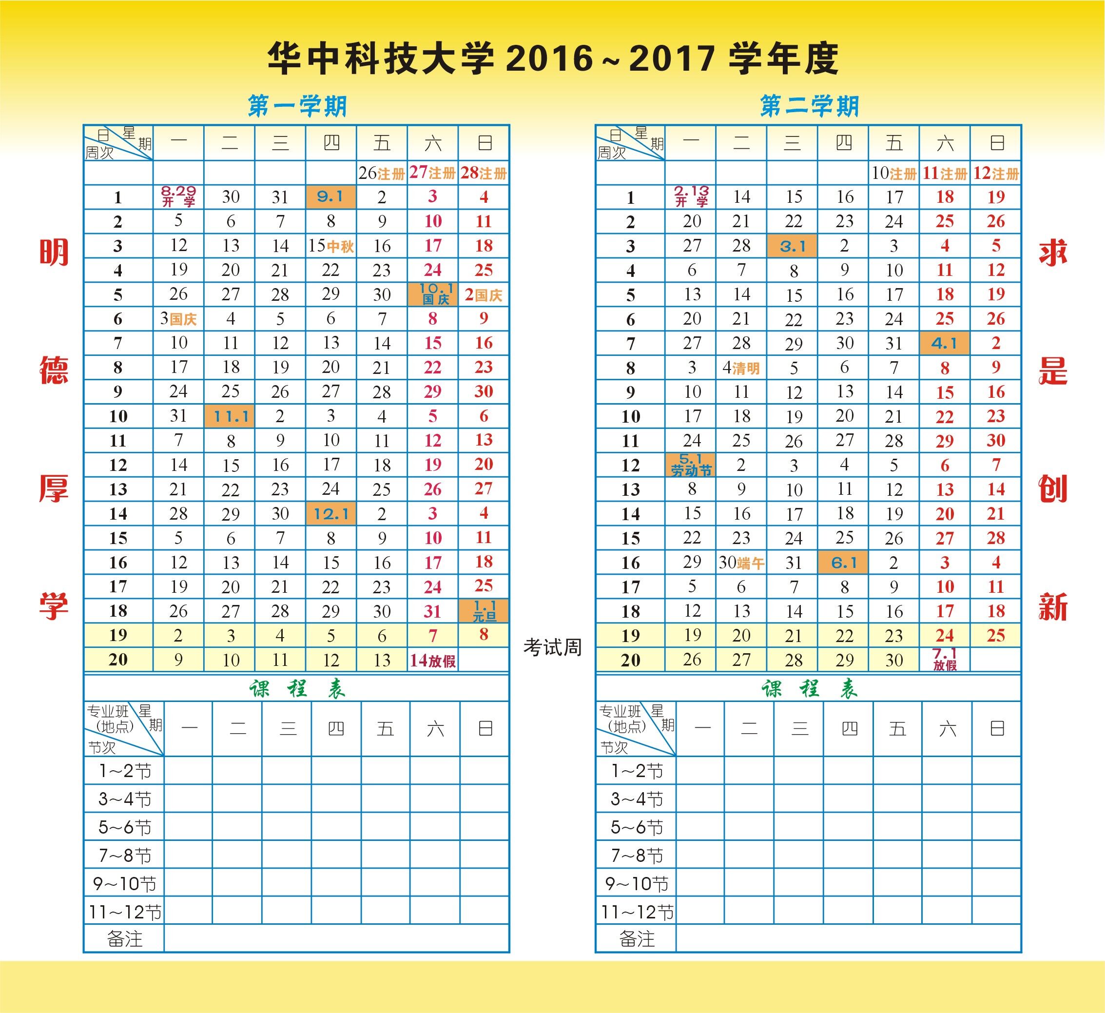 2016-2017校历