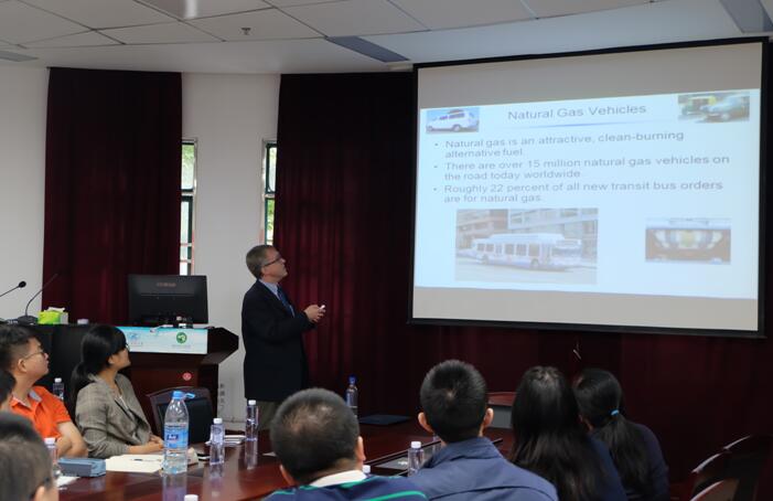 报告中,Snurr教授首先对所任教的美国西北大学作了简要介绍。随后,针对当前能源短缺、环境污染和气候变化等热点问题,Snurr教授提出了利用新型多孔纳米材料——金属有机骨架(Metal-Organic Frameworks,MOFs)来解决储氢和天然气储存等难题。从预测MOFs性能、获取MOFs结构和高效寻找性能优异的MOFs三个方面,生动地介绍了MOFs用于气体储存和分离中的计算辅助设计和高通量筛选技术。报告内容引起了参会师生的广泛兴趣,Sunrr教授对师生提出的问题和困惑给予了耐心细致的解答,教师们深受启发,同学们也感到受益匪浅。